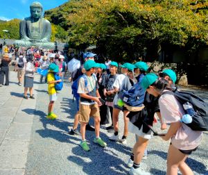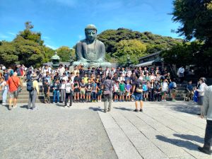 バスは、高徳院の大仏前に到着し、これからグループごとで鎌倉散策となります。