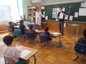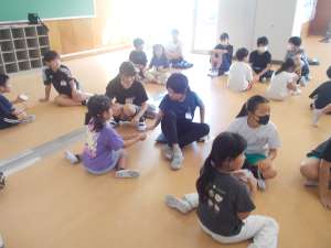 校舎に元気な声がもどってきました。44日間の休みで皆思い出をつくったことと思われます。どの児童も一回り大きくなった感じがしました。教室では配付されたプリントを確認したり、簡単なゲームをやったりしながら過ごしていました。