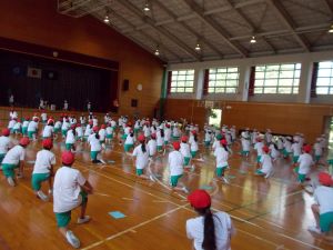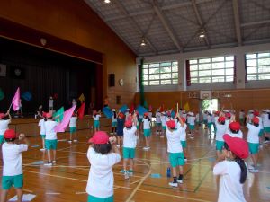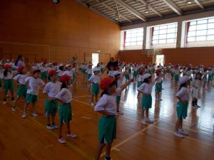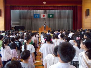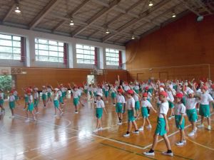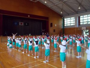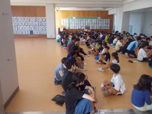 本日は約6ヶ月間の前期が終了した日ということで、前期の終業式を行いました。各コンクール等で活躍した人の表彰式の後、校歌を歌いました。体育館に響き渡る声で歌っている児童が多かったです。