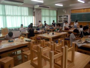 5年生が電動糸鋸を使って作品作りを進めていました。怪我につながる単元でも