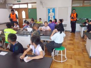 校庭への避難が完了後は、消防士の方から「上手に避難ができていました。」とお褒めの言葉もいただけました。