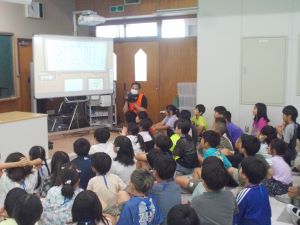 2年生が夏休みの思い出を友だちに発表しました。絵を投影しながら楽しかった夏休みの思い出を伝えていました。