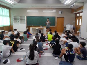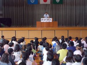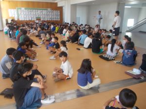 本校の学校教育目標『輝く子』の内容にある、考えたこと、頑張ったこと、優しくしたこと、働いたことや手伝ったことを、この夏休みの間に必ず一つ実践してカードに記入し校長先生に報告をすることが、校長先生から出された宿題でした。