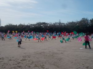 玉入れの練習、高学年はフラッグでの表現の練習を行っていました。