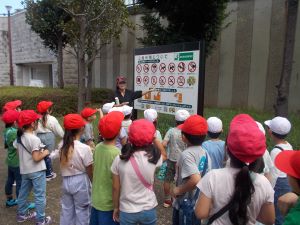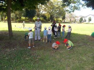 1年生が生活科の学習で、学校の隣にある白井木戸公園に行きました。公園にはどんな植物、生き物、働いている人、施設があるのかを調べる学習です。