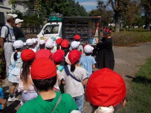 公園内では色々なものを発見しました。彼岸花、ツユクサ、サルスベリ、シジミチョウ、モンキチョウ、どんぐり、マツボックリ・・・また移動販売車の様子も確認でき、大変貴重な経験もできました。