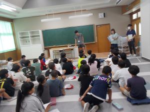 本日は、高学年が即興演劇の指導をしていただきました。今年度、3回目の演劇学習ということで、以前に比べ、だいぶ照れがなくなり、大胆に演技ができています。