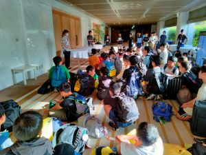 大きなロビーで到着式を行い、グループごとに部屋で過ごします。