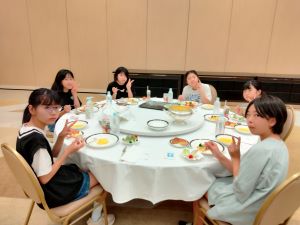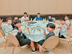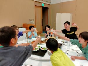 夕食では、ハンバーグや唐揚げなど子供たちの大好物ばかり!!中には、1日目の無事を祝ってか・・・乾杯する微笑ましい光景もありました。