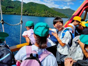 本日4年生が千葉市方面に校外学習に行きました。天候が心配されましたが、午前中は雨が降らずに、予定通り千葉港から遊覧船に乗り、港近くの工場などを見学しました。風が気持ちよく、皆景色を楽しんでいました。
