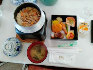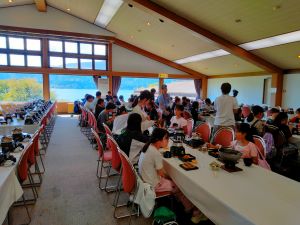 遊覧後は、芦ノ湖が一望できる場所での昼食です。