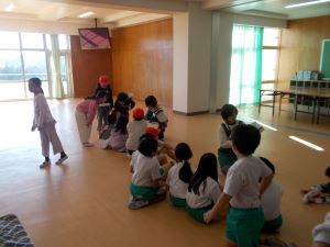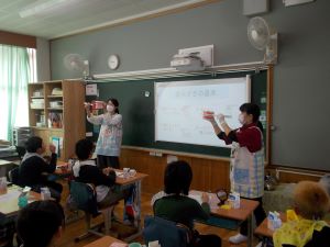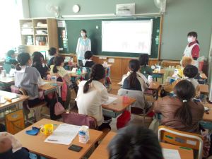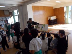 大きな紙芝居や絵本を使ったお話に、子どもたちはぐっと引き込まれ、真剣な表情で耳を傾けていました。物語の世界に入り込んだような静かな時間が流れ、教室には温かい空気が広がっていました。