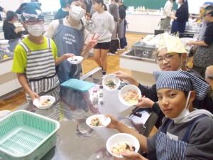 本日6年生が調理実習を実施しました。事前に献立を考え、グループごとに協力して作りました。卵焼きやジャーマンポテト、サラダ、コーンバターに野菜炒めなど、1組も2組も上手にできました。校長室にも持ってきてくれた児童もいて、どれも美味しくいただきました。ごちそうさまでした!