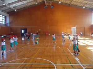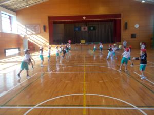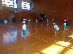 1年生が体育の時間にボールを投げる練習をしました。2人1組になって相手が捕りやすい所に投げるよう頑張っていました。ノーバウンド、ワンバウンド色々と練習を行い、投げることと捕ることの両方が上手になってきました。