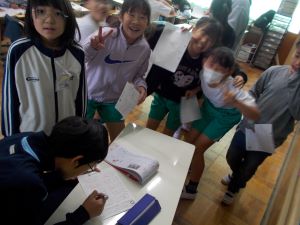 などを調べ、ノートに書き込んでいきました。ドア、ノート、筆箱、ロッカー、黒板