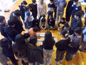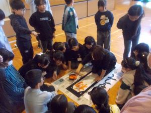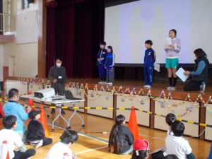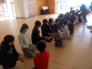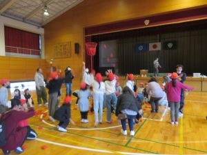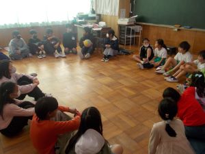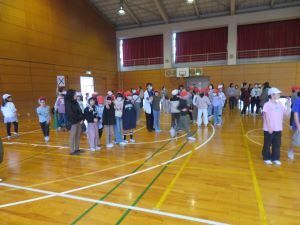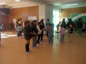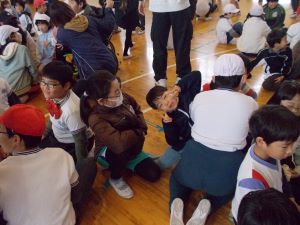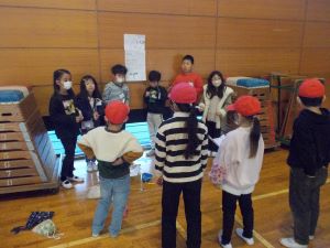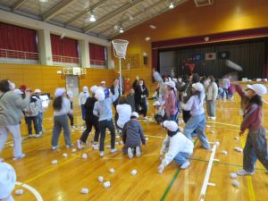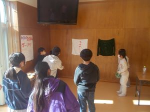 4年生が体育館で学年レクを実施しました。役員の方が考えてくれた玉入れと先生○×クイズです。進行が「下の名前が3文字の人」というようにお題を出し、あてはまる人が玉を投げるという工夫を凝らした玉入れでした。また、先生クイズもみんなが楽しんで答えていました。準備、運営をして下さった役員の方々、ありがとうございました。