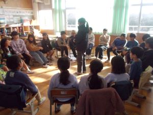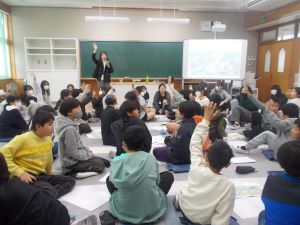 本日は高学年が即興演劇を行いました。令和7年最後の学習でした。いつものようにグループに分かれて、思いつくままに自由に演技をして楽しんでいました。講師の皆さん、ご指導ありがとうございました。