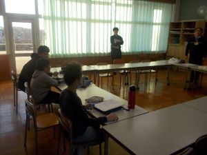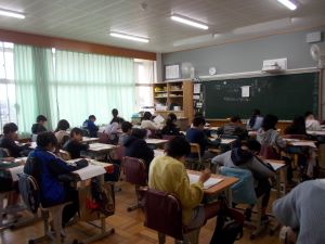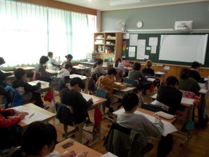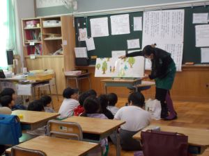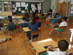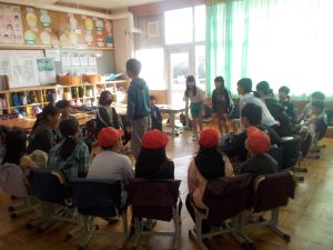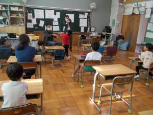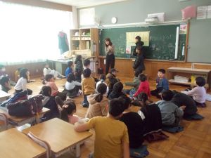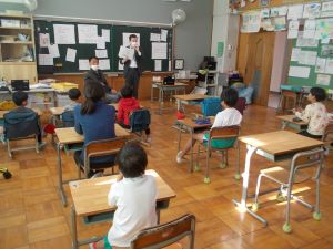 しいのみ学級がALTの先生と外国語活動を楽しんでいました。いろいろな種類の動物についてカードで確認し、英語での言い方と鳴き方について一つ一つ確認をしました。しっかりとした発音で表現できていました。