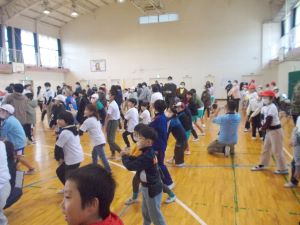 本日、大山口小学校を会場に、しいのみ学級の児童が合同学習会に参加しました。市内9校全ての小学校が参加したので、体育館いっぱいに大勢の児童が集まりました。昆虫太極拳、出たとこ勝負、○×ゲーム、もうじゅう狩りなど、どのレクも楽しんでいました。池の上小は『もうじゅう狩り』を担当しました。ルール説明や進行など、大きな声で上手に表現できました。また、他校の児童とも交流の機会があり、とても充実した学習会となりました。最後は大山口小の児童がお見送りをしてくれ、温かい雰囲気で終了しました。