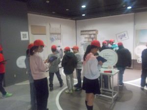 5年生が東京方面に校外学習に行きました。最初はNHK放送博物館です。放送についての歴史、機器、過去の番組のことなど、たくさんの展示物や資料がありました。ニュースや天気予報が体験できるコーナーもあり、チャレンジをしていました。昼食後は有明にある、そなエリア東京に行きました。各自タブレットをもってクイズに答えたり、災害に関する映像を視聴したりするなど、防災に関する内容について学びました。