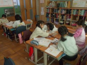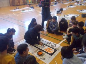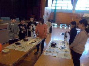 本日も昨日に引き続き、講師の方を招いて書き初め練習会を実施しました。3年生は「ゆき山」、4年生は「初もうで」と書きました。講師の先生から気をつける部分を指導していただき、筆使いやバランスなど皆頑張っていました。特に3年生は書き初め練習会が初めてだったので、少し緊張をしながら取り組んでいました。2日間にわたり、講師の先生には大変お世話になりました。