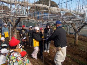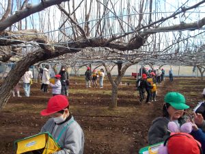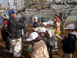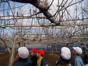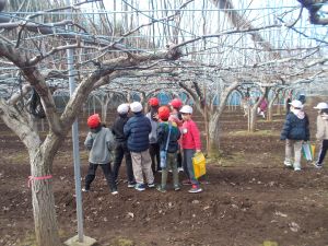 3年生が今年度最後の梨園見学に行きました。今回は、冬の時期の様子について調べました。この時期は必要な枝を残すための剪定をするそうです。この作業は難しいので、浅海さんがやられるそうです。前回と違うことや気がついたこと等、皆調べていました。今回が1年を通して最後の見学でしたので、代表児童がお礼の言葉と感想文の冊子をお渡ししました。浅海さん、1年間子ども達のために本当にありがとうございました。