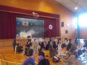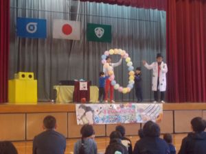 11月30日(日曜日)に、本校体育館にてサイエンスショーを開催しました。手品や科学的マジックを駆使してお笑いにしてしまう、芸人さんをお呼びし、子ども達はとても盛り上がりました。希望者の児童が舞台でマジックのお手伝いをしたり、最後は大きな空気砲を使って輪っかを作ったりして楽しんでいました。PTAの方々、準備や運営などありがとうございました。