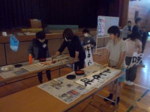 児童たちは真剣な表情で筆をとり、一画一画に心を込めて取り組んでいました。講師の先生のアドバイスを受けながら、集中して練習に励む姿がとても印象的でした。