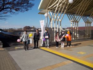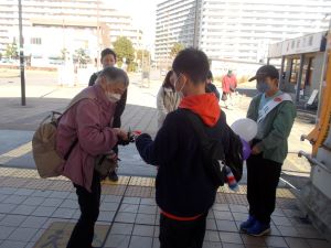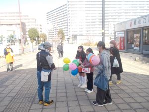 6年生の7名が、土曜日にボランティアとして白井駅前で募金活動を行いました。社会福祉協議会が主催の『赤い羽根共同募金』活動をお手伝いしました。寒い中、「赤い羽根共同募金にご協力お願いしまーす。」と呼びかけ、多くの方が募金をしてくださいました。小さな子には風船を渡しました。最後は一人一人に『ボランティア活動証明書』が手渡され、終了しました。集まった募金は、子育て支援、高齢者福祉、災害支援などに役立てられるそうです。協力をしてくれた6年生、ありがとうございました。