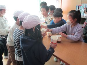 何日かぶりの給食に、子ども達は喜んでいました。「おいしい」「残さないで食べよう」と、どの学年も食が進んでいました。やっぱりみんなで食べる給食はいいですね!