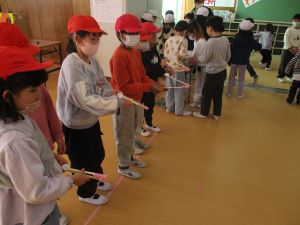 本日は多くのクラスでお楽しみ会を実施しました。じゃんけん列車やハンカチ落とし、ボールを使ったゲームなどで盛り上がりました。