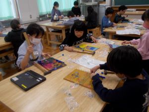 3年生は図工の学習で「くぎうち」に取り組みました。今回は学習のまとめとして、これまでに作った作品を見直しながら、釘の位置を調整したり、ビー玉の転がり方を確かめたりして、よりよい作品に仕上げていきました。 子どもたちは、釘を打ち直したり、工夫を加えたりしながら、最後まで集中して取り組んでいました。自分の手で作り上げた作品に、満足そうな笑顔があふれていました。