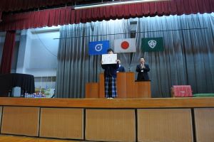 本日は、冬休み前最後の登校日でしたので、全校児童で「冬休みを迎える会」を実施しました。まずは、様々な部門で活躍した多くの児童の表彰を行いました。次に全校で『夢の世界を』を歌いました。1年から6年までしっかりと歌えていました。校長先生の話では、今年活躍した日本人の話から始まり、池の上小にも友だちや人のために活躍した人が多くいたこと、そして「その優しい気持ちをもち続けて、令和8年も過ごしていきましょう。」という話がありました。最後は、池小レンジャーが登場し、『ふ・ゆ・や・す・み』の頭文字で冬休みの過ごし方について発表してくれました。