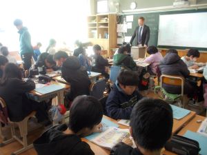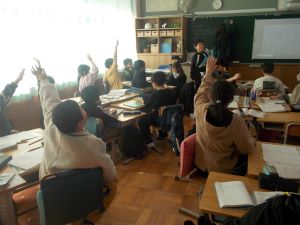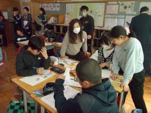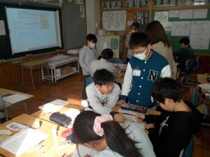 5年生が外国語の時間に、目的地の行き方について学習をしました。「Go straight.」「Turn right.」と学校内の各教室の行き方について、図で確認をしながら正しくたどり着くことができました。