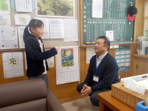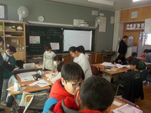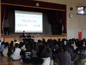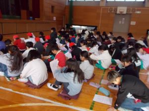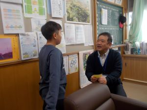 夏休みと同様に、冬休みも本校の教育目標「輝く子」の内容である、考えたこと・頑張ったこと・優しくしたこと・働いたことについて実践できたことを、カードに記入して校長先生に報告をします。対象は全校児童です。毎日校長室に数十人が報告に来てくれます。「洗濯物をたたんだ。」「弟の面倒をみた。」「宿題を早めに終わらせた。」「親と一緒に年越しそばを作った。」「お風呂洗いを毎日して、お風呂担当大臣になった。」・・・どの児童も輝いています。
