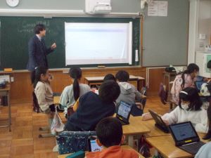 3年生がICT支援員からデザインツール「キャンバ」の使い方について学びました。今後、プレゼン資料や新聞作りに役立てていく予定です。