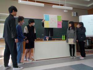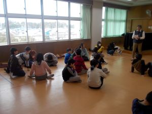 本日の即興演劇は一年間の終盤ということもあり、上級編の内容でした。「ある人物はカレーライスを作った。」からスタートして、「めちゃめちゃ美味しかった。」で終わるよう、グループで短い言葉をつなげていくという練習でした。内容がつながるよう個々がしっかりと考えて表現していました。
