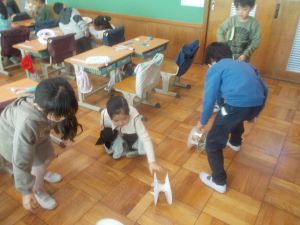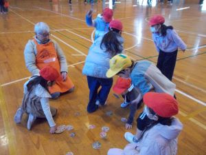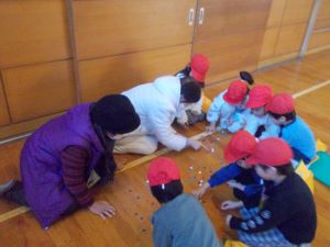 本日は1年生が、池小地区社会福祉協議会や地域の方に協力をいただき、「昔遊び」を体育館で行いました。お手玉、羽根つき、こま、おはじき、けん玉、めんこ、かんぽっくり、おり紙の遊びにそれぞれ分かれ、やり方やこつを教えてもらいました。感想では、「お手玉が上手になった。」「めんこが楽しかった。」「おはじきがたくさんとれた。」・・・喜びの声が多く出ました。親切丁寧に教えて下さった方々、ありがとうございました。子ども達にとって思い出に残る一日となりました。
