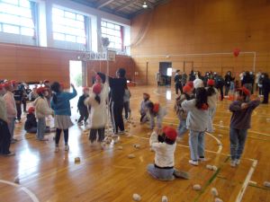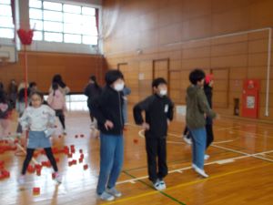 本日はPTAの方のご協力により、2年生が学年でレクを行いました。体育館で、「貨物列車」と「玉入れ」です。貨物列車では、保護者も一緒にじゃんけんをして列車をつくっていきました。最後は児童と担任が決勝となり、何と担任が優勝!盛り上がりました。