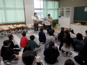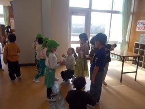 白井若葉幼稚園の年長さんが池の上小学校を訪れ、幼小交流会を行いました。1年生の児童たちは、小学校のお兄さん・お姉さんとして、校内を案内したり、生活科の学習で取り組んだ「わくわくまつり」で年長さんをおもてなししたりと、立派に役割を果たしていました。