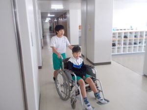 社会福祉協議会、市役所の方にご協力をしていただき、4年生が「車椅子体験」と「認知症について」の学習をしました。体育館では、車椅子の介助方法について学び、実際に校内をおして回る体験をしました。また特別教室では、認知症について学習し、その状態や周りの人がしてあげられること等を確認しました。協力をしていただいた多くの皆様、ありがとうございました。
