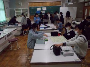 広島へ行った使節団の資料は、小学生でも分かりやすく、興味津々でした。特に、6年生は社会科で歴史を勉強したので、学習のまとめとしても活用できたようです。展示物の資料も、中学生の作品に「すごい」「どうやって作るの?」と子供たちを釘付けにしていました。
