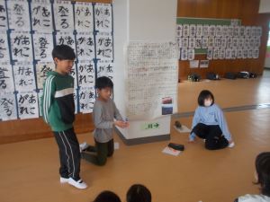 1年生が幼小交流会に向けて、学校案内の練習をしました。以前2年生から教えてもらったことを、今度は自分が教える番なので、先生の話や説明の仕方を真剣に聞いていました。幼稚園の友だちにわかりやすく教えてあげられるといいですね!