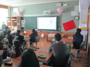 今日は、中学へ進学する6年生に動画を観てもらいました。また、全校児童がみれる場所に掲示物を展示しました。