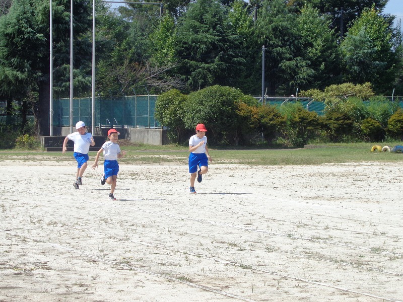 2時間目に4年生が100走を行っていました。もう10月の運動会に向けて準備が始まっているのです。暑さに気をつけながら行いました。懸命に走っている姿、それを応援する姿が印象的でした。
