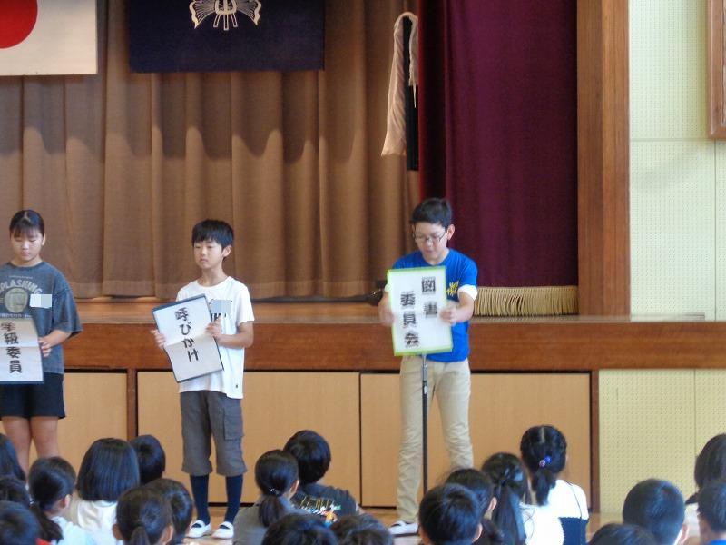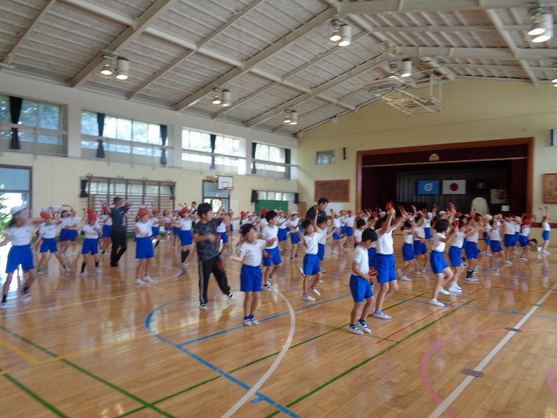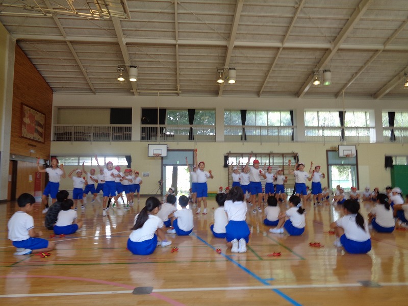 朝晩めっきり涼しくなり、過ごしやすくなりました。体育館では、3,4年生が運動会に向けて鳴子をならし、よさこいソーランの練習をしていました。4年生が3年生に踊りのお手本を見せ、3年生は憧れのまなざしでじっと見ていました。日に日に上達していくことでしょう。図書室では、2年生が、読書活動推進補助教員の先生に子ども新聞を紹介してもらっていました。低学年のうちから新聞に親しみ、様々な話題に興味をもってくれたらうれしいです。このあと、読みたい本の貸し出しもあり、熱心に読書をしていました。