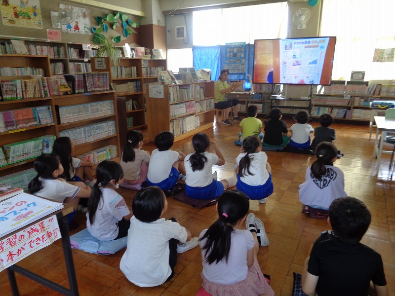 今日は、おはなしぶらんこさんによる朝の読み聞かせがありました。途中で出てくるクイズにも子供たちは大盛り上がりでした。正解を見つけようと一生懸命に考えたり、友達と顔を合わせて楽しそうに答えたりする姿が見られました。朝早くからご来校いただき、本当にありがとうございました。次の読み聞かせも、子供たちと一緒に楽しみにしています。