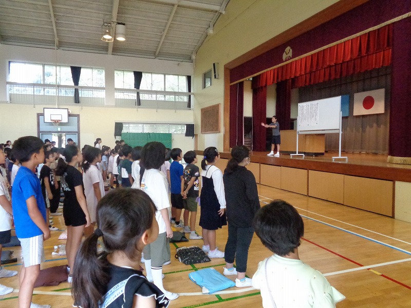 9月はじめの避難訓練がありました。雨が強く降っていたので、体育館に避難しました。100年以上前に起こった関東大震災についてお話があり、地震の後には倒れてくる物だけではなく、火事にも気をつけなければならないことを知りました。これからも安全に気をつけて過ごせるようにしましょう。