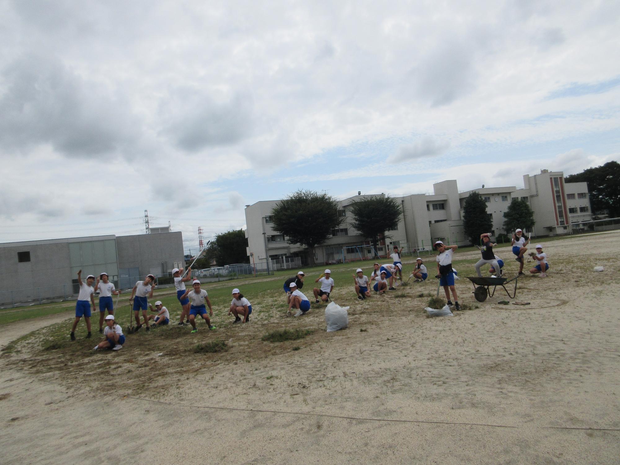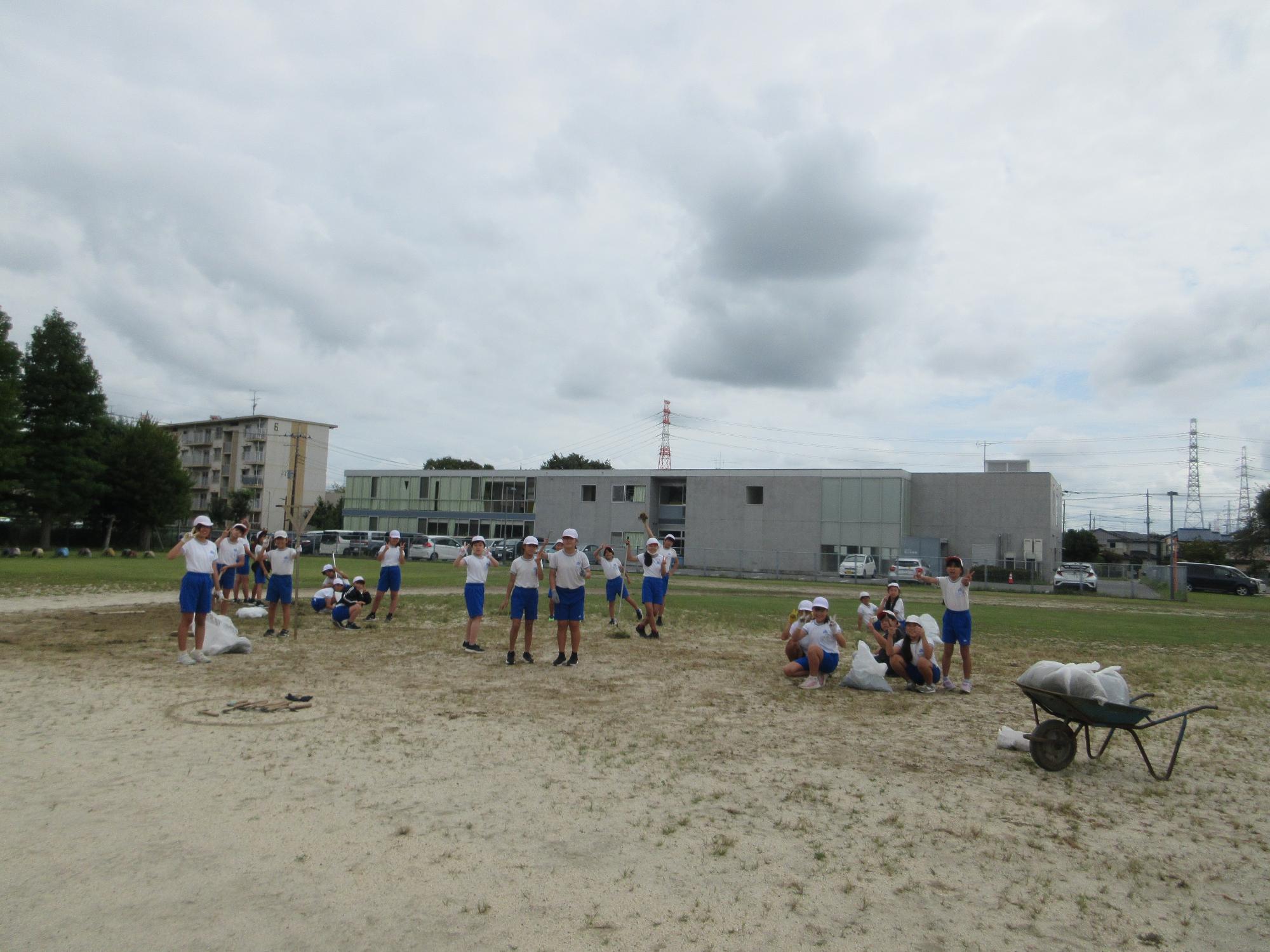 運動会に向けて、6年生で校庭の草取りを行いました。抜いても抜いても生えてくる草の生命力はすごい!しかし、草に負けじと明るく楽しく元気よく、抜いて抜いて抜きまくりました。これからも安全に競技に参加できるように、どんどん抜いていきたいと思います!