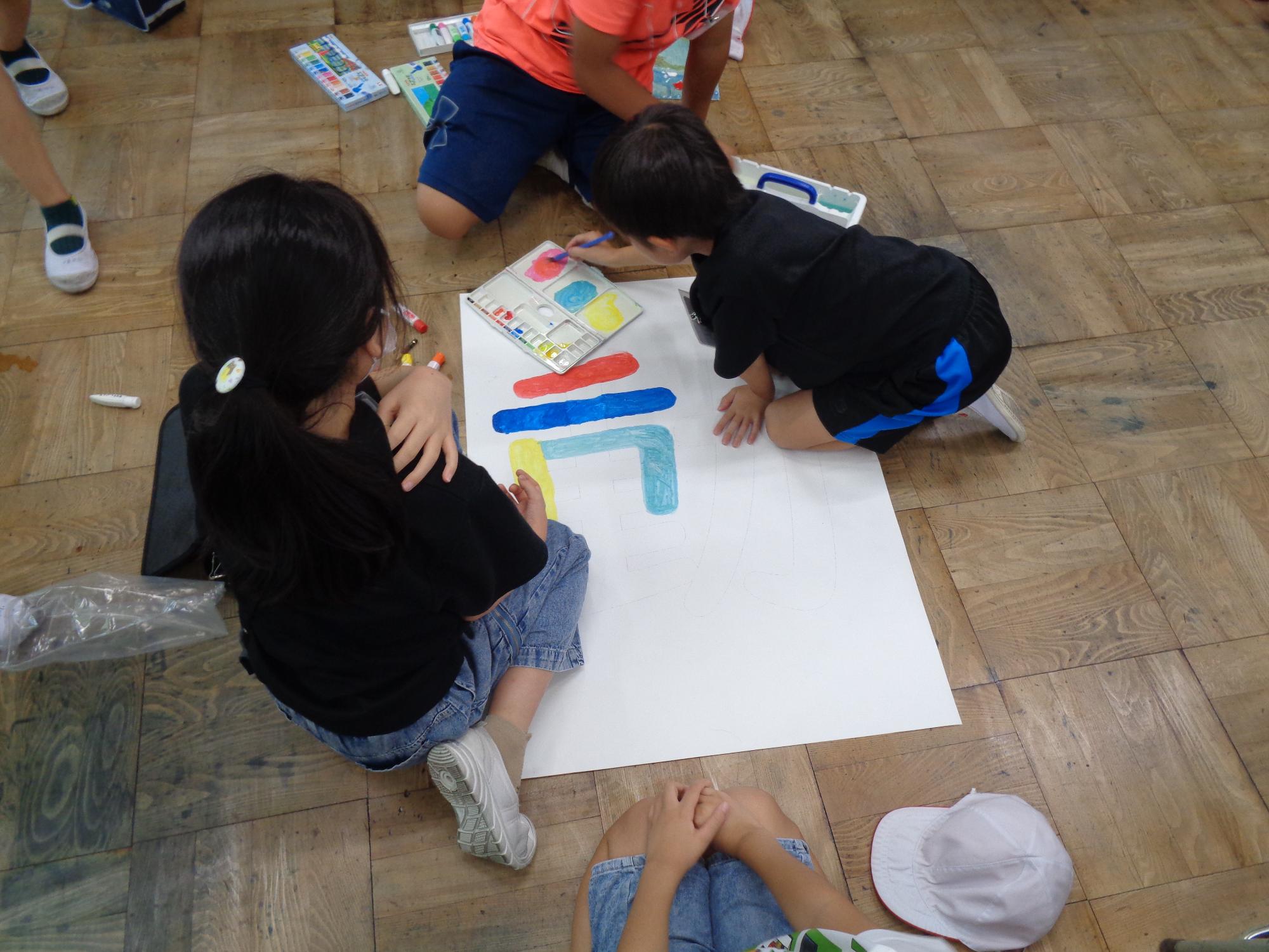 今日は、運動会までのカウントダウン掲示を作りました。文字は絵の具で丁寧に彩り、文字の周りには「運動会といえば?」をテーマに、グループごとに相談して絵を描きました。はちまきや応援の旗、鳴子など、子供たちのアイデアがいっぱい詰まった掲示が完成しました。一生懸命に取り組む姿に、運動会への気持ちの高まりを感じました。